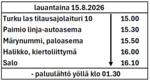 Vainion Liikenne järjestää lauantaina 15.8. kuljetuksen Turusta festareille.